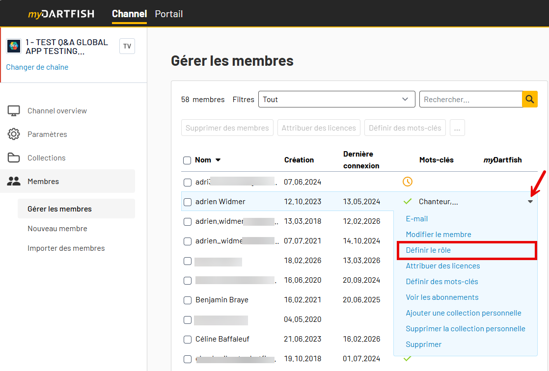 Cliquez sur le membre pour afficher le menu de gestion des membres