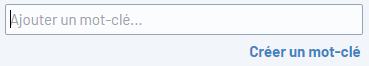 - Ajoutez des mots-clés existants via le champ « Ajouter un mot-clé… » et la fonctionnalité de saisie semi-automatique. Cliquez dans le champ « Ajouter un mot-clé… » OU déplacez votre curseur sur ce champ avec la touche « Tab ».